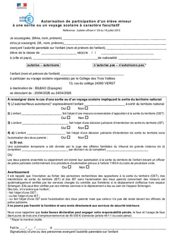 Autorisation Voyage Facultatif